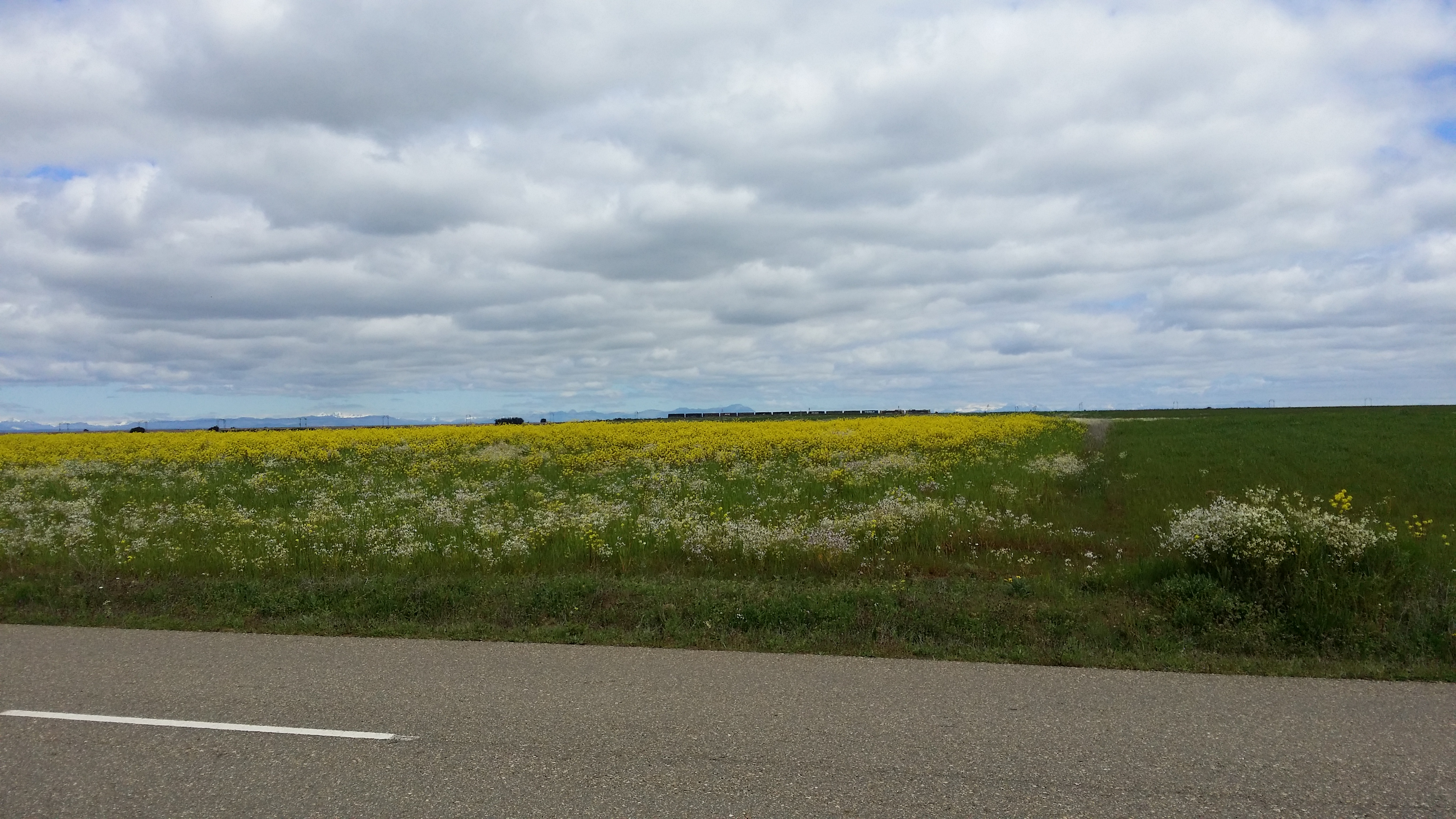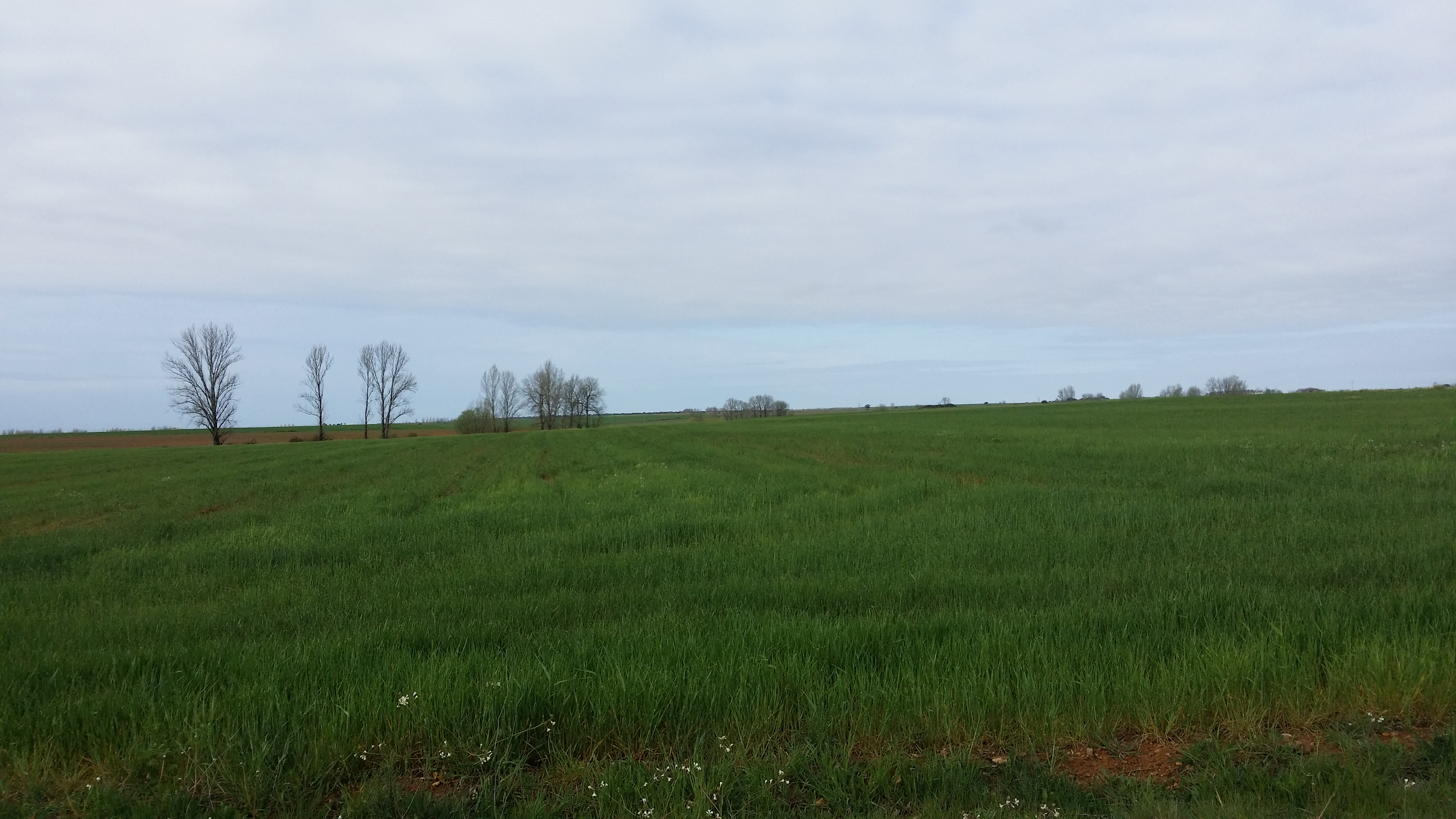 마을을 지나는 것을 제외하고 대평원을 가로지르는 길이다. 차도를 따라 차도 옆에 순례 길을 만들어 놓았다. 마을이 거의 없어서 지평선을 향해 걷는 순례길이다. 흙길로서 걷는 데는 좋은 길이지만 지평선만 바라보고 걷고 있으니 걸어도 걸어도 앞으로 전진하는 느낌이 미미하다.