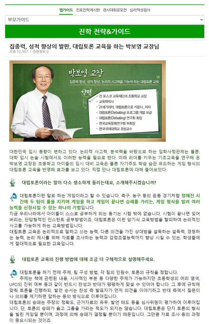 게임형 대립토론에 대하여 인터뷰 내용을 소개한다