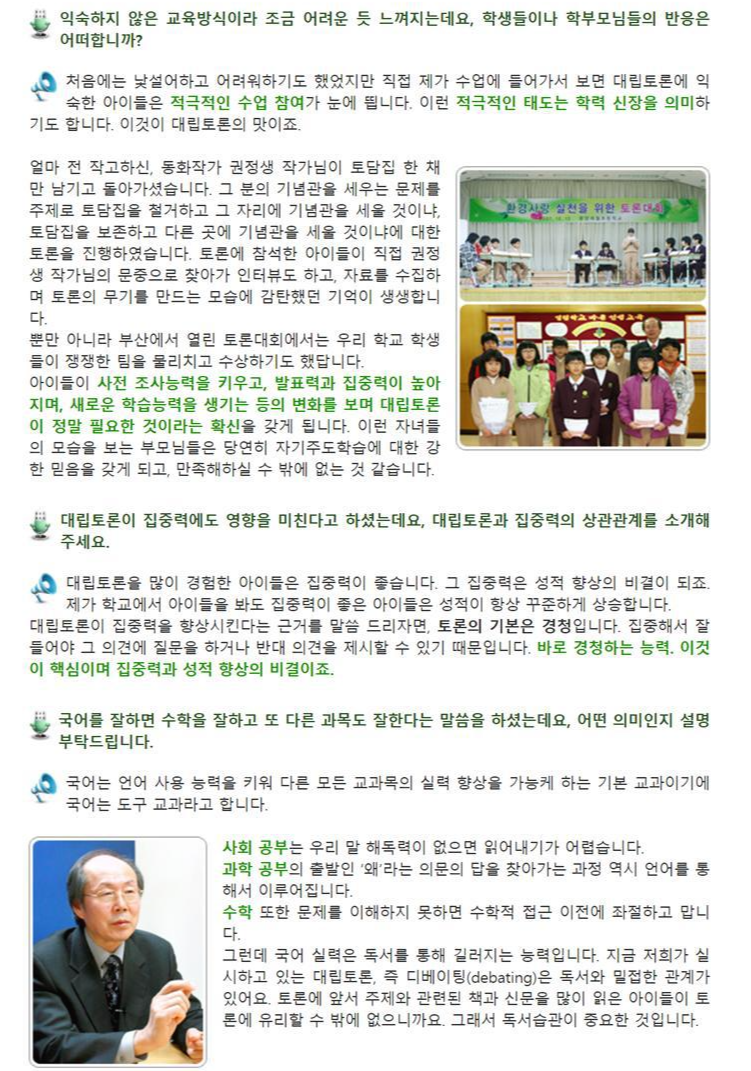 게임형 대립토론에 대하여 인터뷰 내용을 소개한다