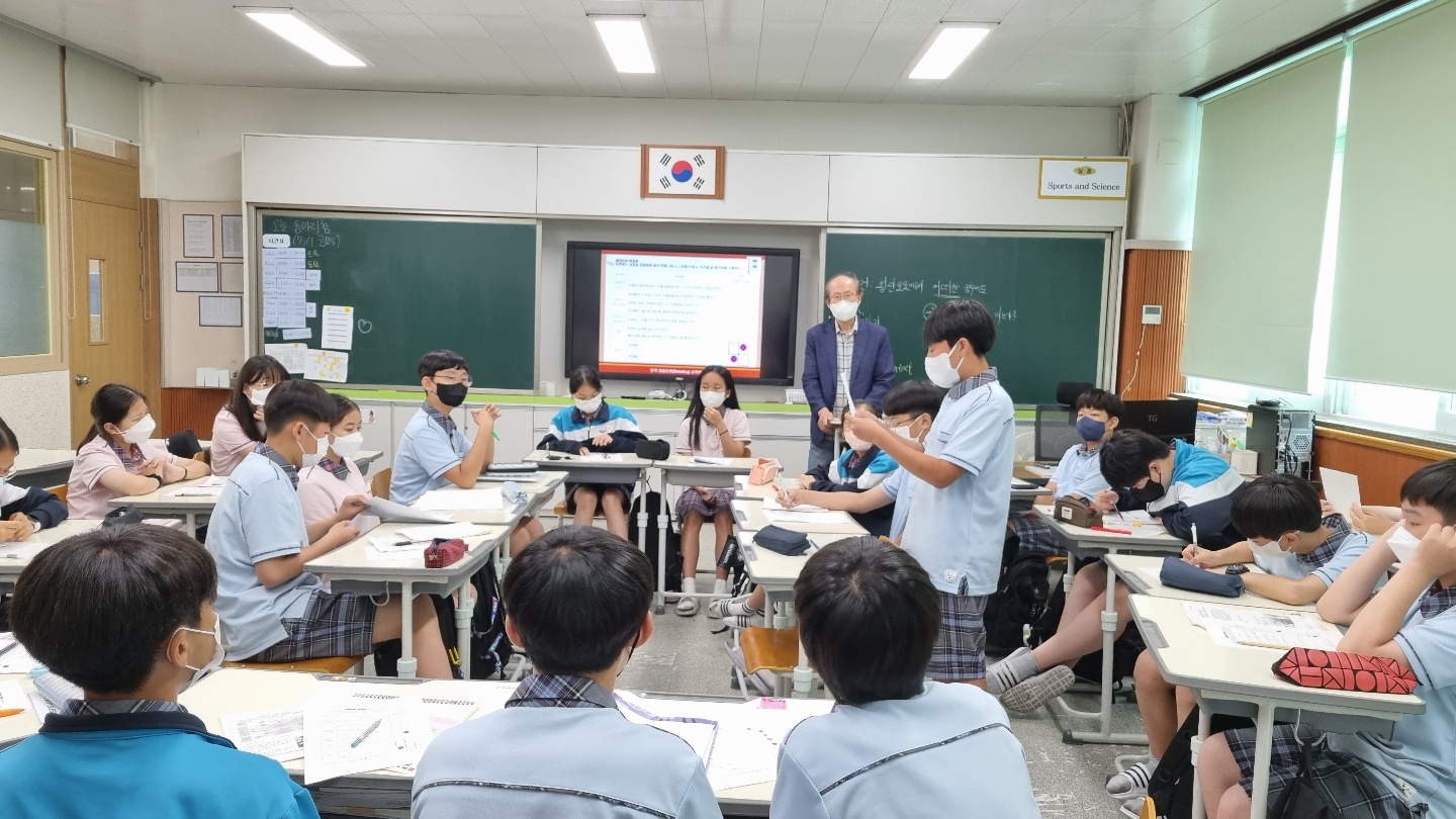 게임형 대립토론 교사 연수를 먼저하고 이어서 1학년 6개반에 2시간씩 수업을 진행하였다