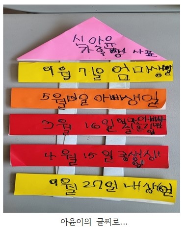 처음에는 삐뚤빼뚤한 글씨였지만, 아윤이는 글자를 쓰고 싶은 마음이 넘쳤습니다.
