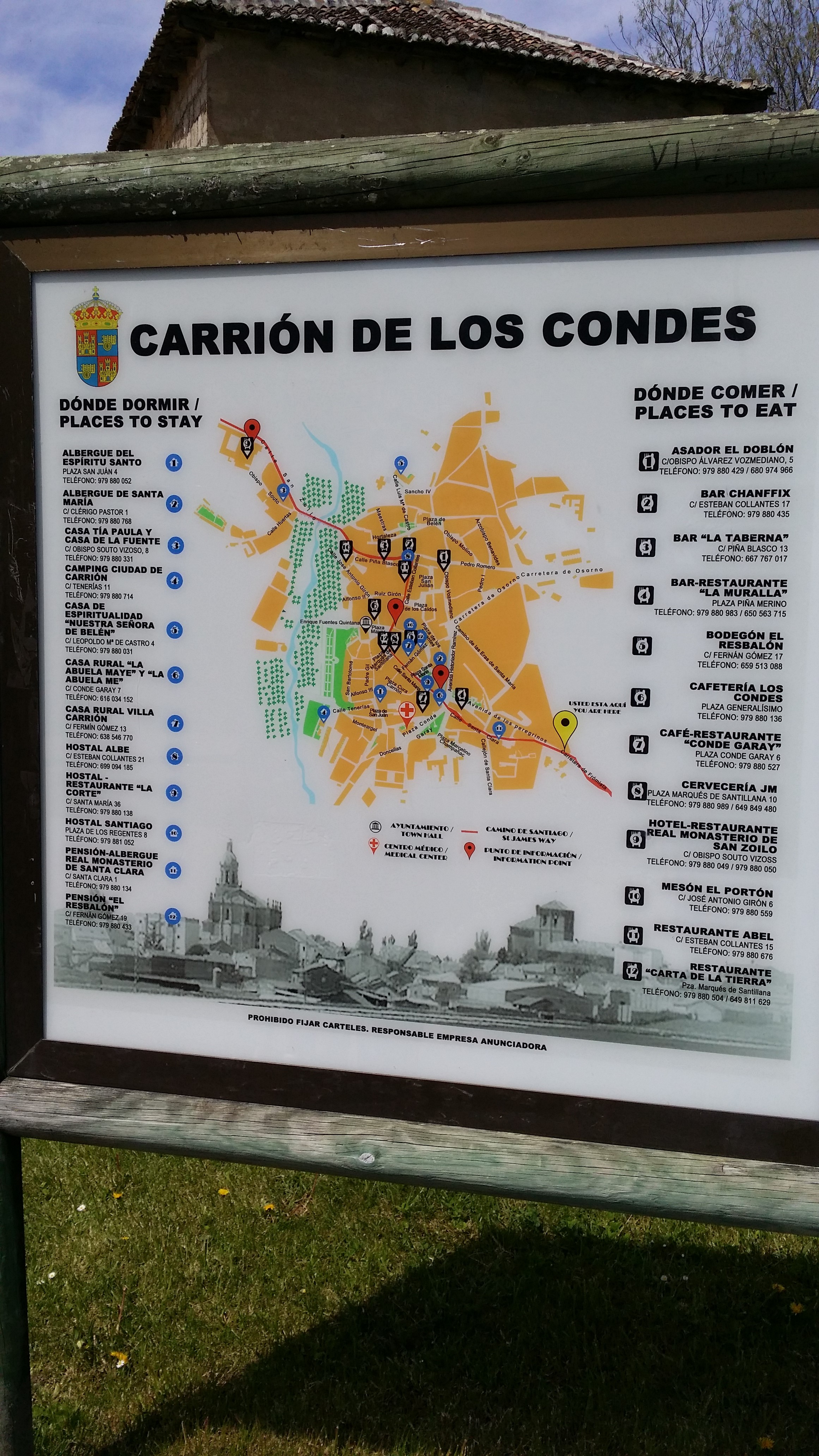 설상가상으로 나의 몸 상태가 엉망이었다. 오른쪽 발목과 왼쪽 발바닥에 말로 표현 할 수 없을 정도의 통증으로 고통스럽다. 걷는 중간에 테이핑 하여 그런대로 참을 수 있는 상태이기에 어그적 어그적 절뚝 절뚝 걸을 수 있었으나 carrion 숙소 도착 즈음에는 고통이 극에 달할 정도였다.