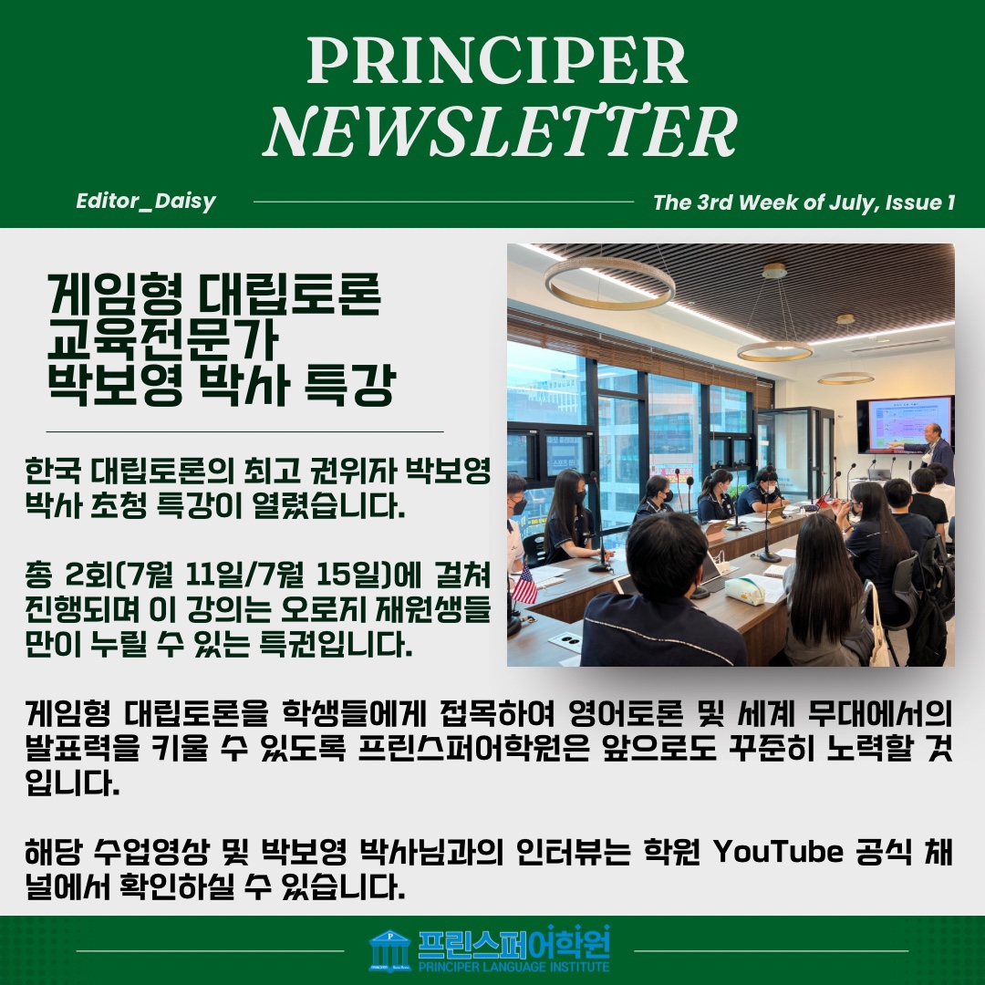 우리말 게임형대립토론을 적용하여 영어 토론을 활성화 하겠다는 강한의지를 보이네요.